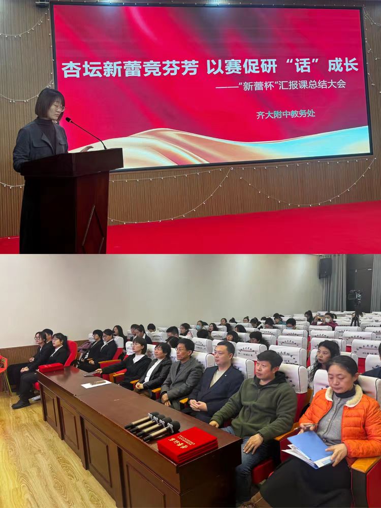 喜看杏坛填秀色,乐闻木铎振新声。日前,青年教师汇报课总结大会在齐大附中五楼会议室举行,校长李从举、党支部书记何瑛琦,副校长谈华、王贺、王珊珊与全校教师一同参加大会。大会由教务处副主任蔡文静老师主持。