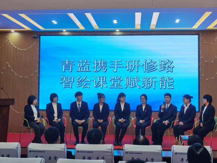青蓝携手研修路,智慧课堂赋新能。在总结会上,教务处范淼主任携5位青年教师及指导教师,聚焦青年教师成长和智慧课堂建设,以教师沙龙形式进行了深入研讨。研讨中,大家取得共识:课堂是学校文化落地的地方,也是学生核心素养生根的地方,要聚焦课堂,更新方法,让学习真正发生,让生成充满课堂。