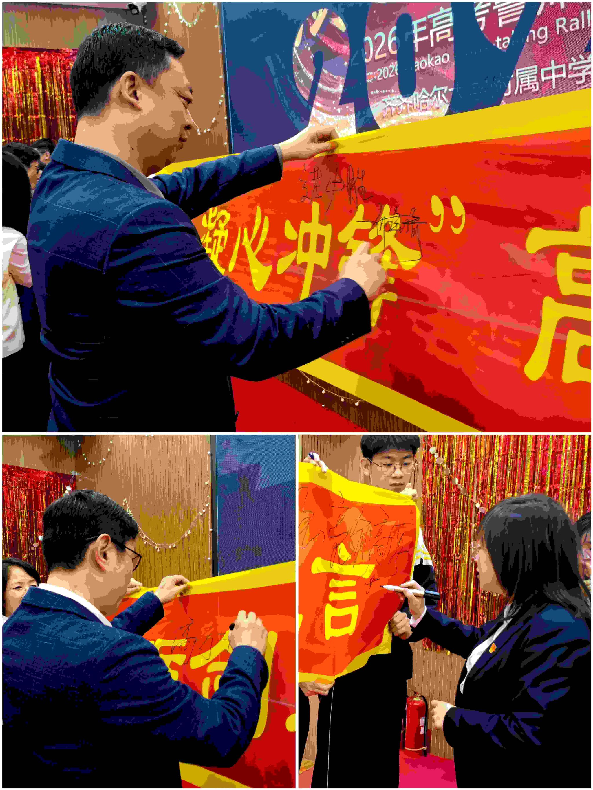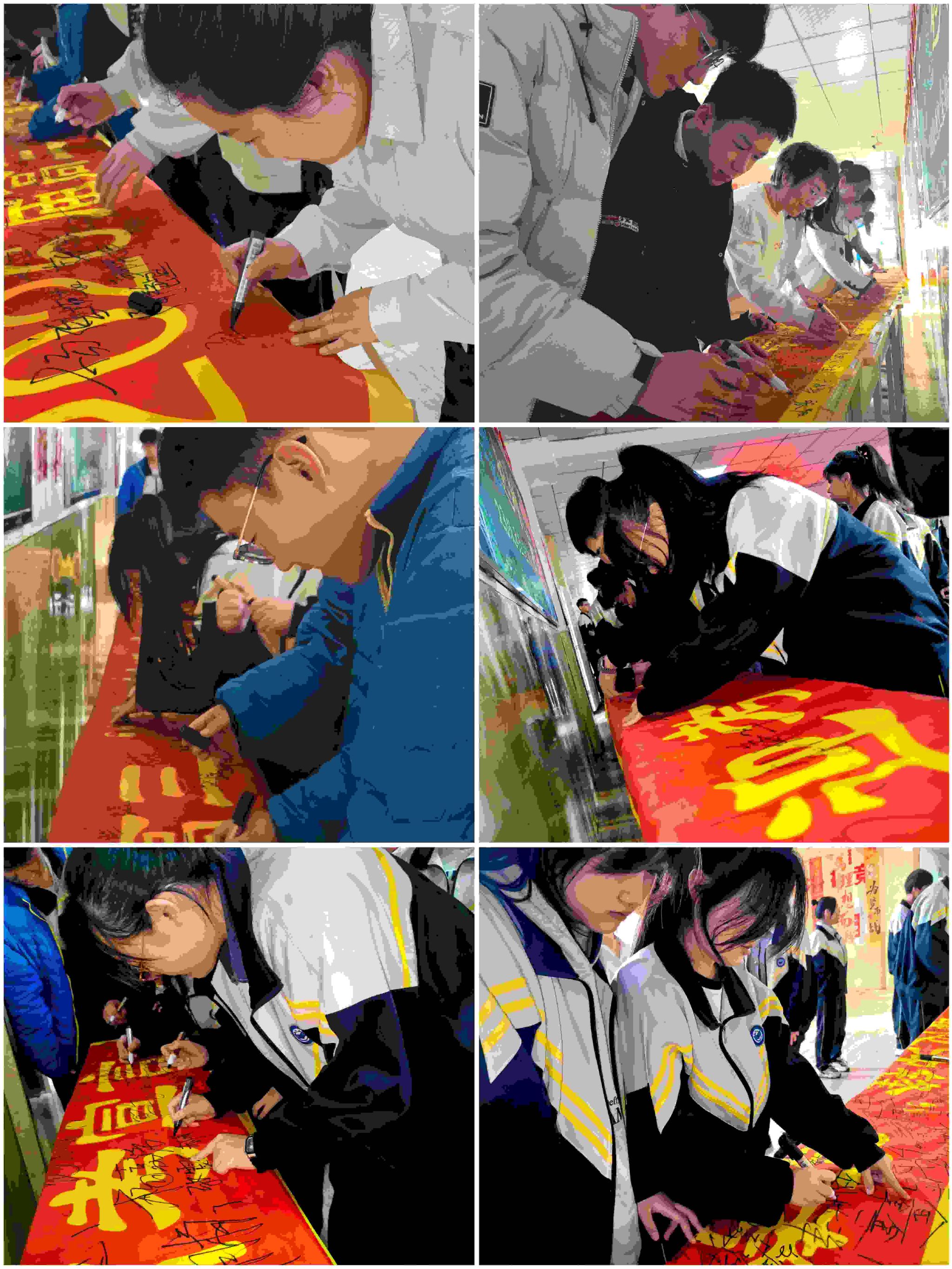 活动最后,校领导及全体教师在励志横幅上郑重签名,写下对学子们的绵绵祝福与殷殷期许。全体高三学生在年级组郑重签名,写下战胜高考、感恩母校的真情。签名横幅上密密麻麻的名字,如同一张张青春的面容,留在了母校的史册上。这是学子们立下的军令状,是不畏困难、冲刺高考的见证,更是最珍贵的青春印记。