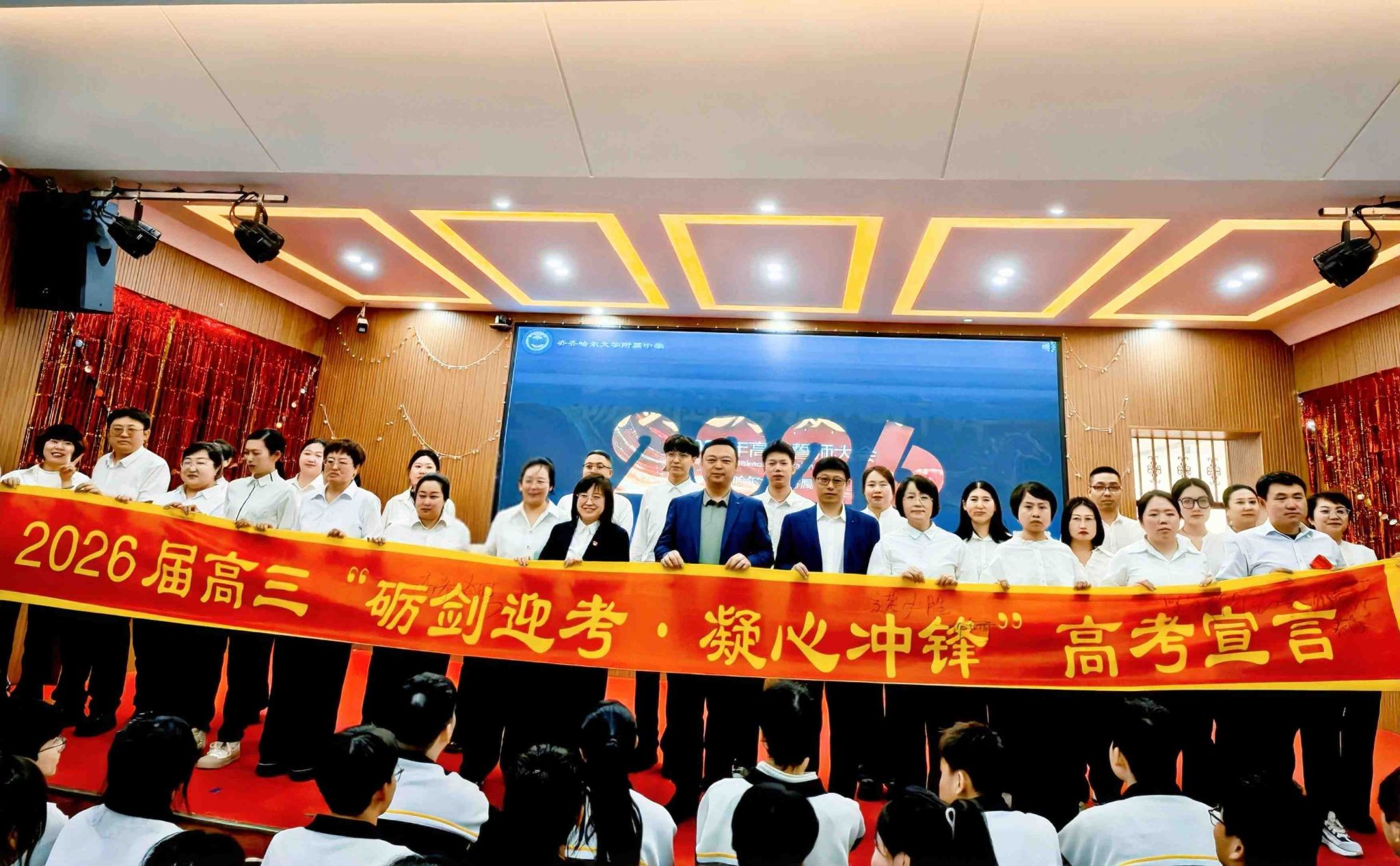 整场活动以“砺剑迎考,凝心冲锋”为核心主题,以温情感恩、同心陪伴、铿锵立誓三大版块层进之势,表达了全体高三学子勇赴高考战场的坚毅自信和对母校恩师的真诚感恩。
